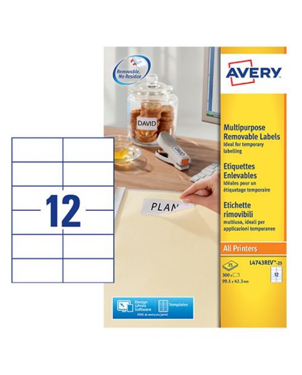 Avery Remv Lsr Lbls Wht 12L/Sht Bx25