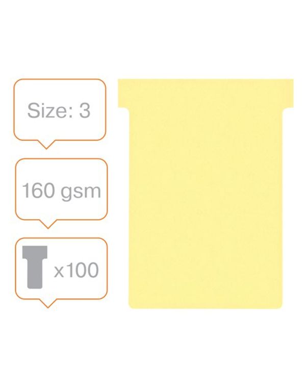 Nobo T-Card Size 3 Yellow Pk100