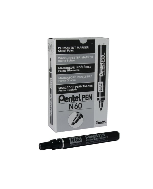 Pentel N60 Chsl Tip Marker Blk Pk12