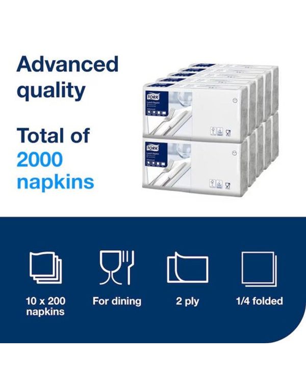 Tork Lunch Napkin White 2 Ply Pk200