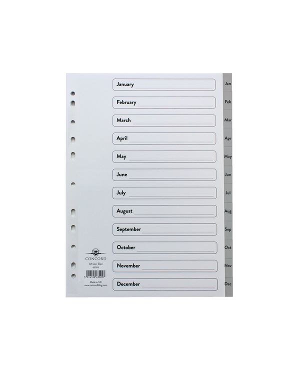 Concord Index Pvc A4 Jan-Dec Grey