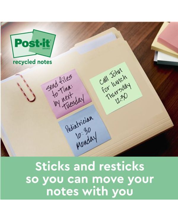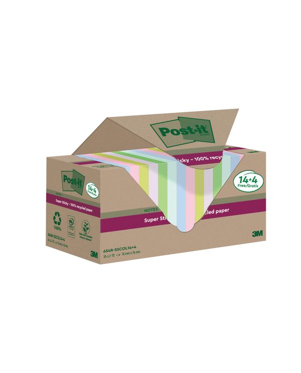 Post-It S/S Recycle 76X76 Asst Pk18
