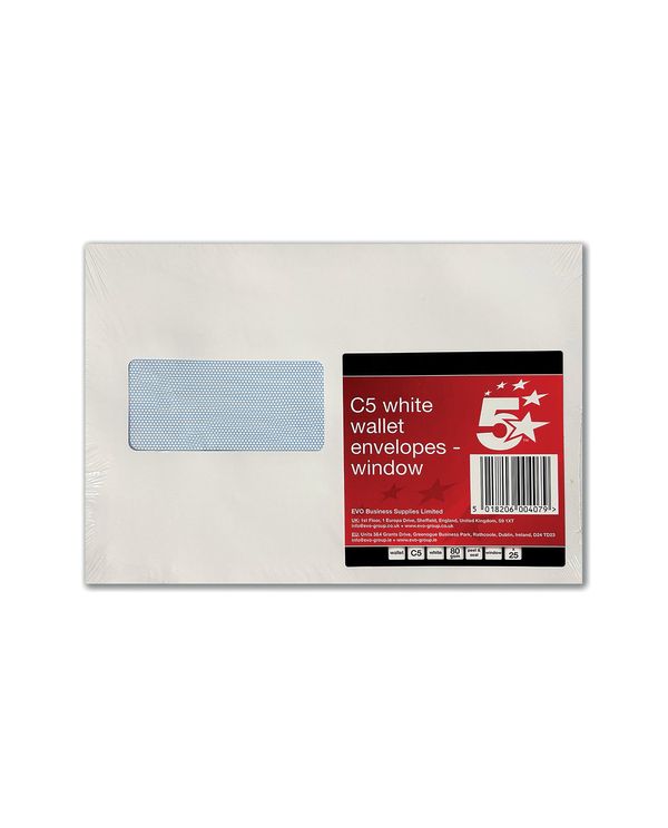 C5 Window Pkt Envelope Plsl Wht Pk25