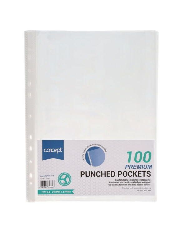 Concept Pkt.100 A4 Punched Pockets (Cart