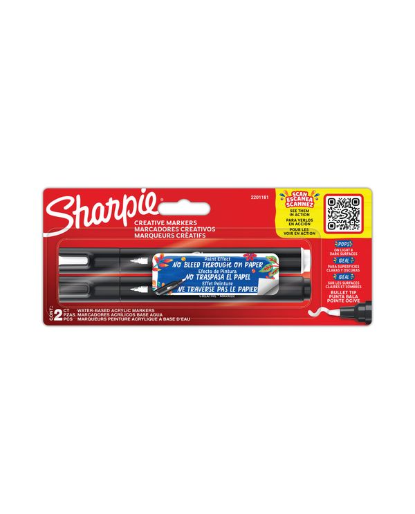 Sharpie Marker Bullet Blk/Wht Pk2