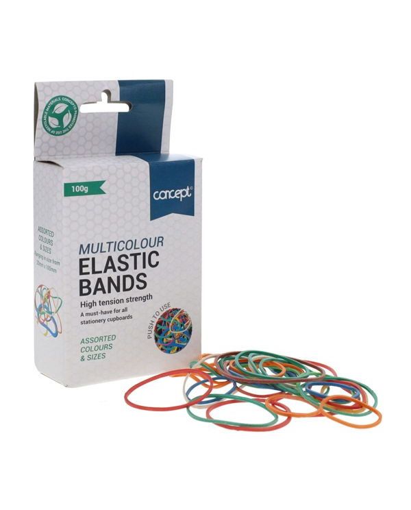Concept 100G Box Elastic Bands Asst Size