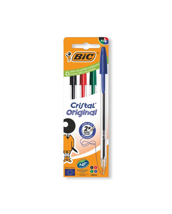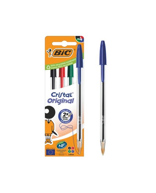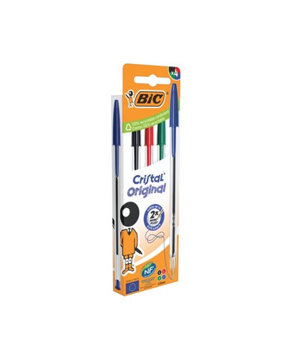 Bic Cristal Ball Pen Med Ast Pk4
