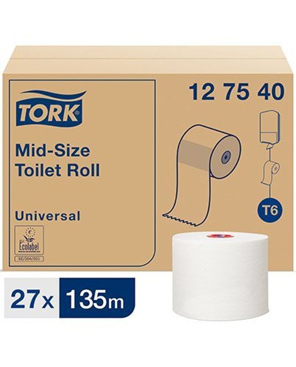 T6 White Mid-Toilet Roll Pk27