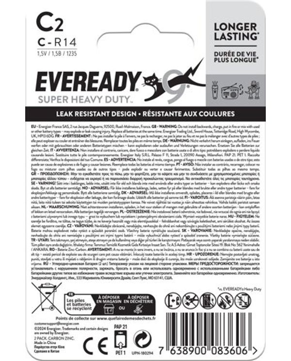 Eveready Super Hd Size C Battery Pk2