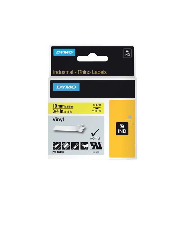 Dymo Rhino Vinyl Tape 19Mm Blk/Ylw
