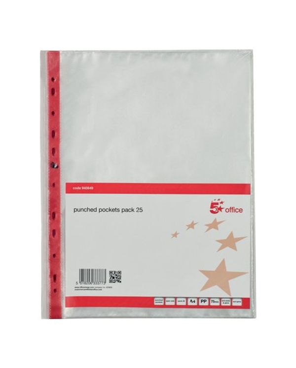 Punched Pkt Reinf Red Strip A4 Pk25